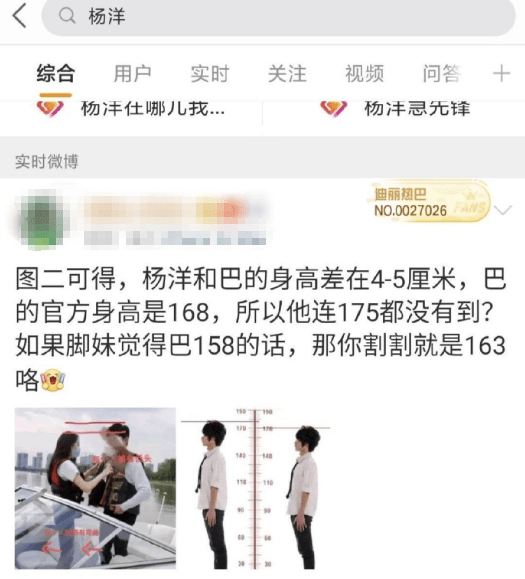 杨洋和迪丽热巴的粉丝骂战来得毫无预兆,突然之间双方粉丝就拿杨洋的身高说起了事,微博搜索杨洋,实时动态里充斥着大量攻击和谩骂的帖子。