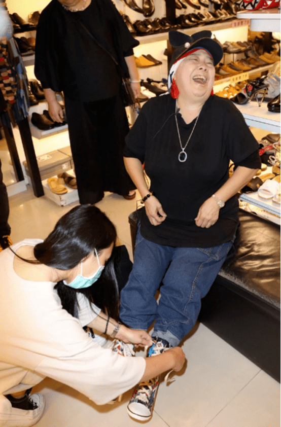 据悉,费贞绫这次高调出街出手十分阔绰,逛夜市途中也是不停的买买买,在与粉丝热聊期间看到一家潮鞋店,便高兴的进去试鞋,还让店员给她试穿高跟鞋,在现场更是载歌载舞,引得鞋店老板跟众人开心得哈哈大笑,最后花了4000多元购入了一双潮鞋也是立马上脚继续开心的逛夜市。