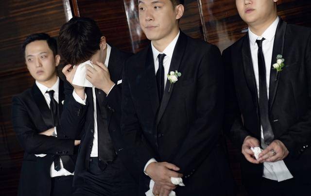 接到新娘后,新人在酒店里举办婚礼仪式,邓伦作为伴郎团的一员,站在旁边观看,竟然被感动到变成了小哭包,拿着纸巾掩面哭泣,身边好友看邓伦的眼神成亮点。