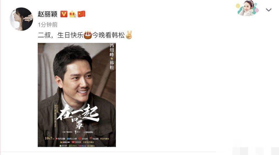 10月7日,是冯绍峰42岁生日,中午一点多,作为老婆的赵丽颖发文为老公冯绍峰庆生,“二叔,生日快乐,今晚看韩松”。简简单单的11个字,虽然文案很简短,但其中包含的内容却不少。