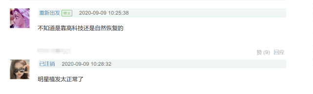 有网友质疑刘诗诗发量回春是因为做了植发,留言表示:“明星植发太正常了。”还有网友猜测“不知道是高科技还是自然恢复的”。