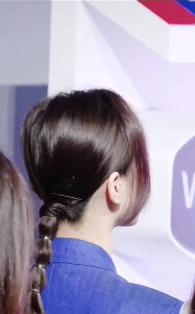 侧面看扎起来的头发,只有短小一截,看起来着实不多。