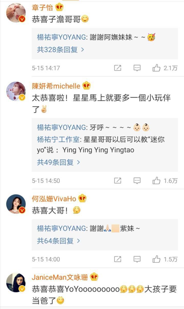 不得不说杨祐宁真的太会了,特地选在9月9日这个有特别意义的一天官宣,代表着长长久久非常浪漫。在杨祐宁这条微博发出后,不少明星和网友便在微博下方纷纷送上祝福。