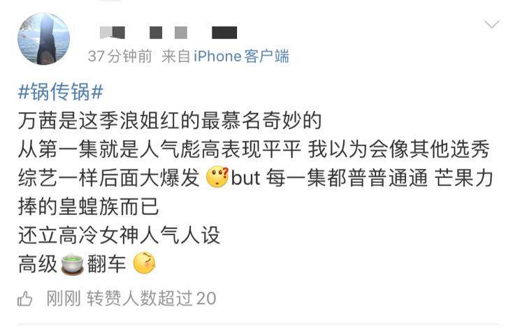 不过节目收官之后,七人成团,因为宁静的不想成团言论再度引发热议,结果万茜在某平台的账号点赞关于宁静和郁可唯的负面评论再度引发争议。宁静在李佳琦的直播疑似回应被点赞负面评论,说该翻篇了,过去就让它过去,显得很大度,没有之前的纠结和情绪化。而万茜方面回应被盗号,虽然表示道歉,但后续的发展有点搞笑,撤出两个平台,感觉好像都想借助万茜炒作,变成了罗生门事件,其实万茜可能不会再回应此事,毕竟谁知道一个人夜间三四点点赞,然后五点取消,是手滑还是真被盗号?