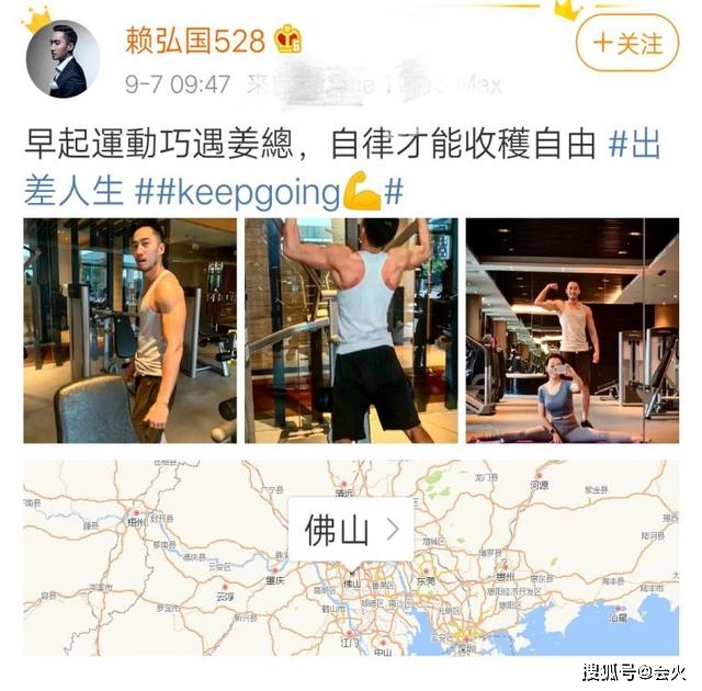 而在阿娇出事当天,她的前夫赖弘国则在社交软件上,晒出自己三张充满阳光的健身照,其中还有张是与美女老总的合影。