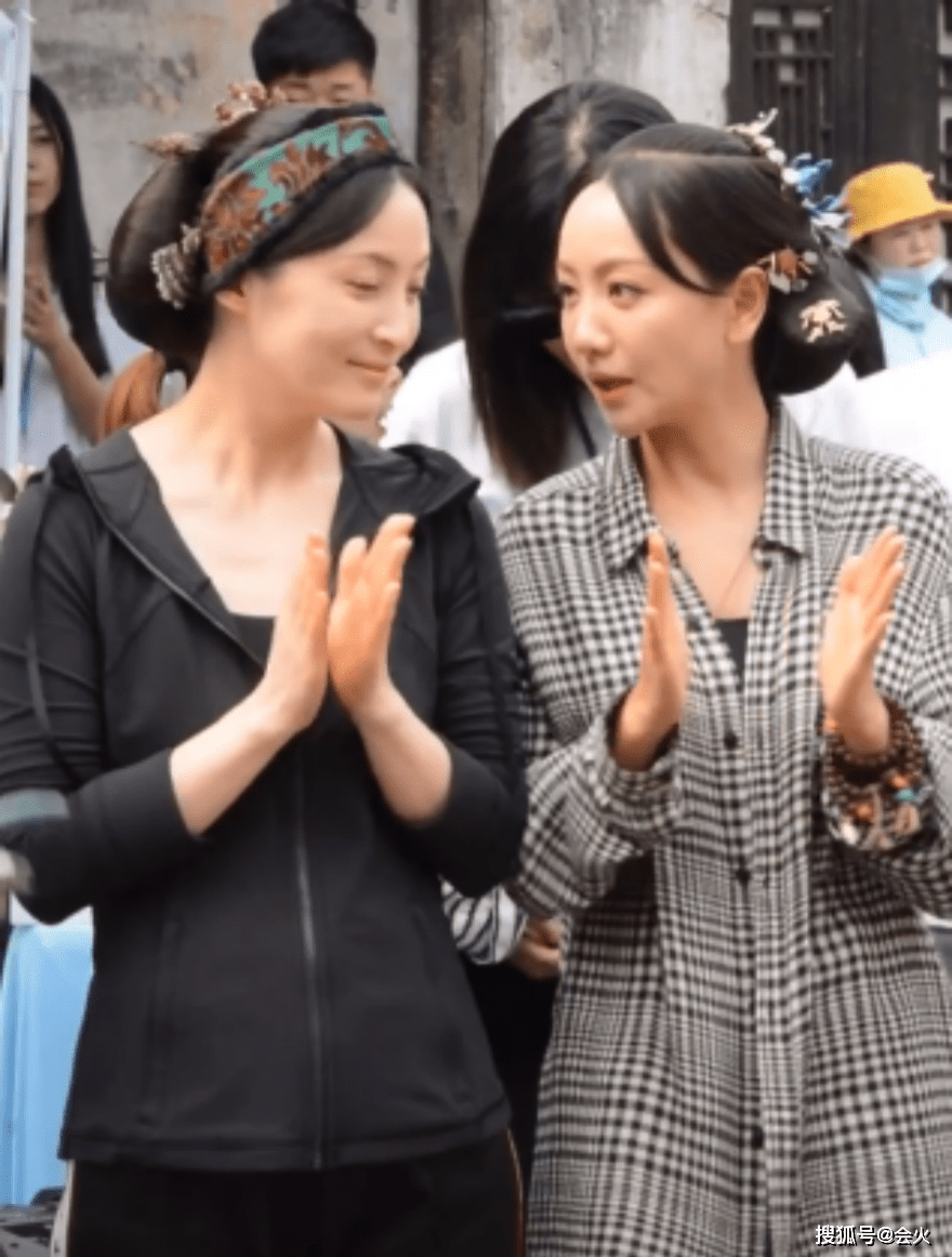 在开机现场,蒋勤勤和杨蓉留着剧组的造型、穿着私服站在一起,两人有说有笑,看起来关系不错。