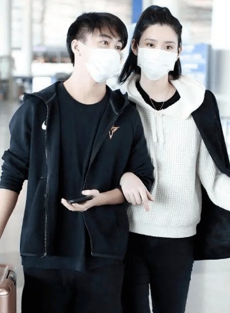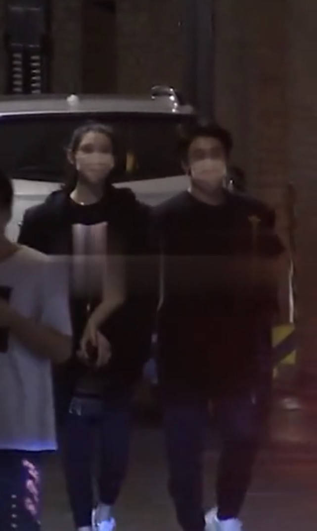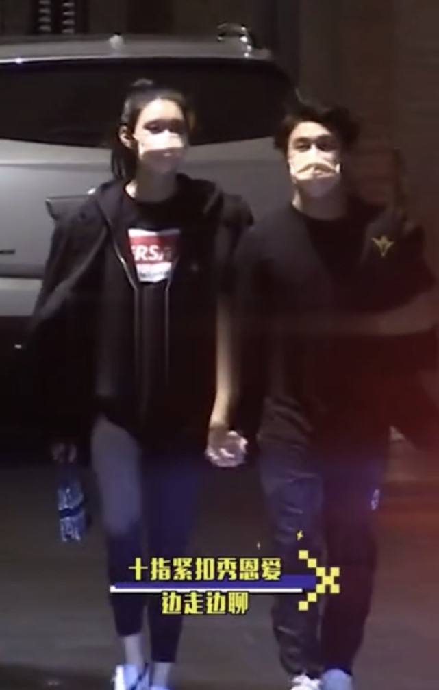 小夫妻同样穿着黑色上衣和深色运动裤,似是经过特意搭配穿成情侣装,只是奚梦瑶多披了一件黑色运动外套。