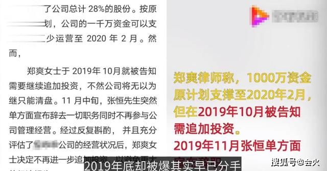 然而,2019年11月中旬,张恒突然单方面宣布辞去公司一切职务。经过反复斟酌与评估后,郑爽也随后宣布停止对两人合伙所开的公司追加投资。