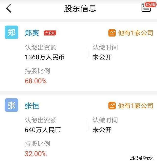 据公开消息查询得知,两人曾在2018年12月20日合伙注册了一家科技公司,注册资金2000万。张恒担任法定代表人,投资640万,持股32%,郑爽投资1360万,成为最大的股东,持股68%。随后,该公司又投资1000万,于2019年注册了现如今这家被限制消费的新公司。